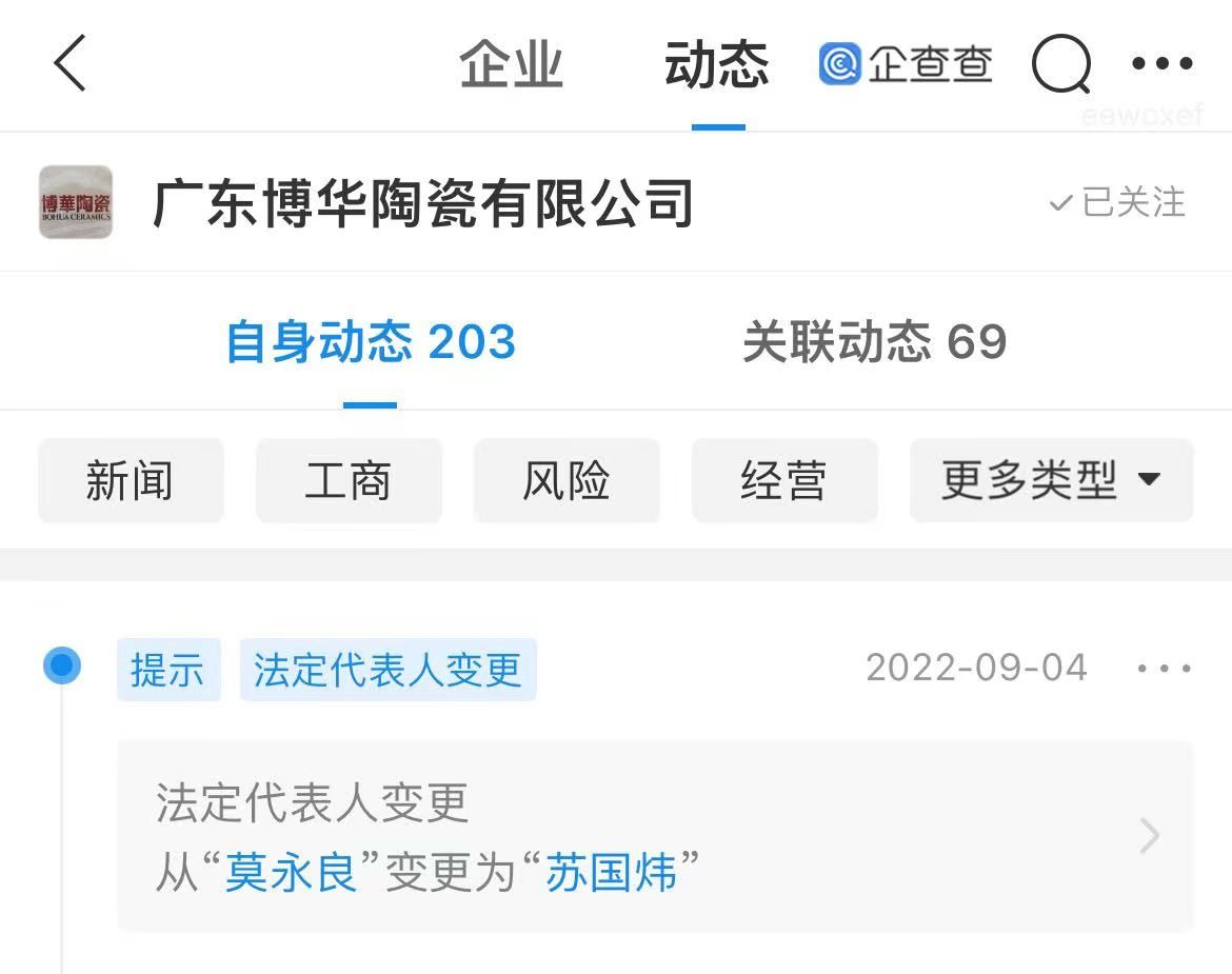 博华陶瓷法人代表由莫永良变更为苏国炜